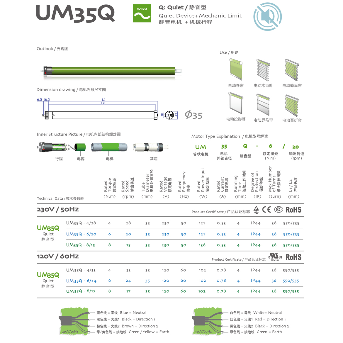 Q:Quiet/靜音型 靜音電機+機械行程